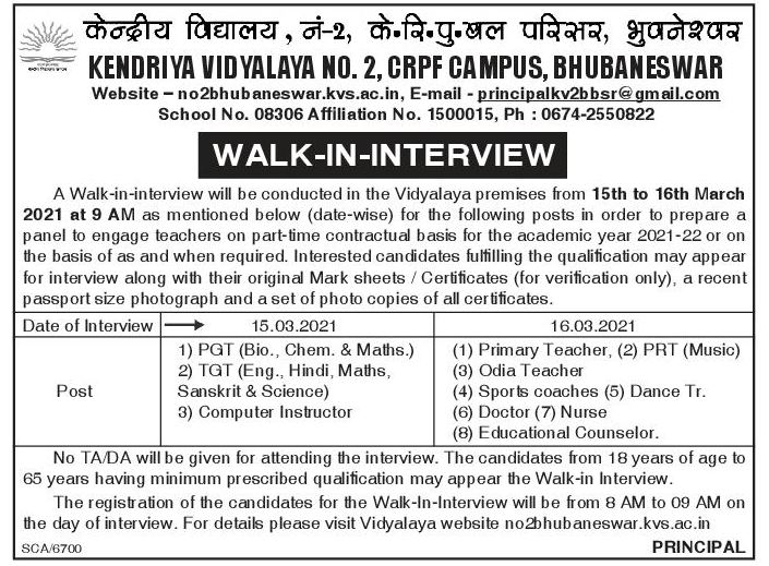 Posts Name : PGT, TGT, PRR, Computer, Dance & Music, Yoga, Educational Counselor & Odia Teacher.